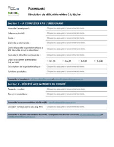 Formulaire de résolution des difficultés reliées à la tâche